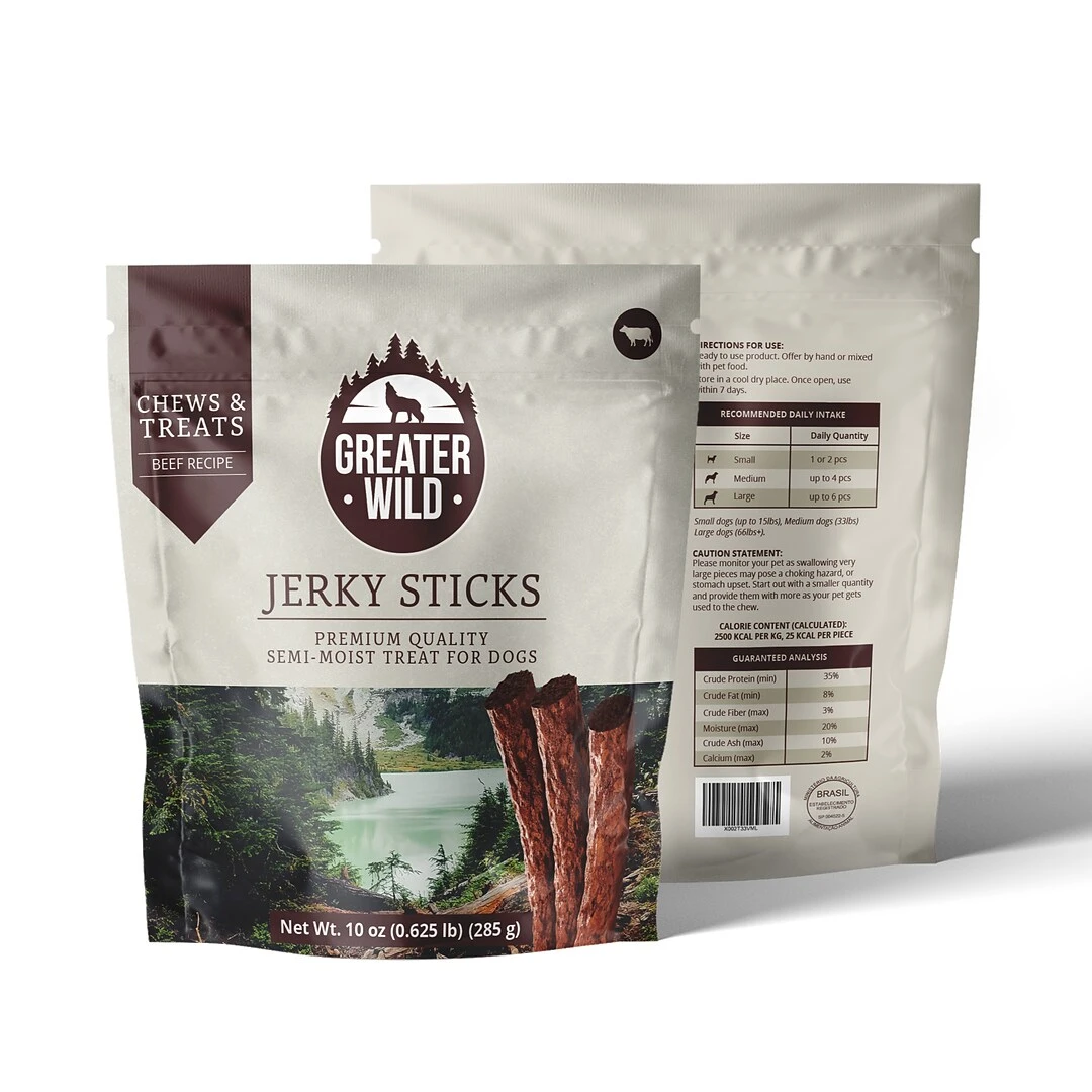 Greater Wild’s Jerky treats are a great way to keep your pet happy. Our Jerky treats are packed full of flavor and nutrients that your pet needs and wants. Made from high quality beef, at Greater Wild we pride ourselves in our rigorous quality standards so you can be sure our Jerky treats will be your go-to treat for rewarding your dog. These long-lasting chews not only keep your best friend entertained, but through abrasive chewing, they keep their teeth clean, too.The soft texture of our Jerky treats is one pets love to enjoy and even the fussiest dogs will eat up. If you are planning on training your pet, our treats are the perfect motivation to get them where you want them to be. Because of the way Greater Wild Jerky treats are prepared, handling these treats won’t leave your hands smelling of processed pet food and will leave your pet hungry for more.