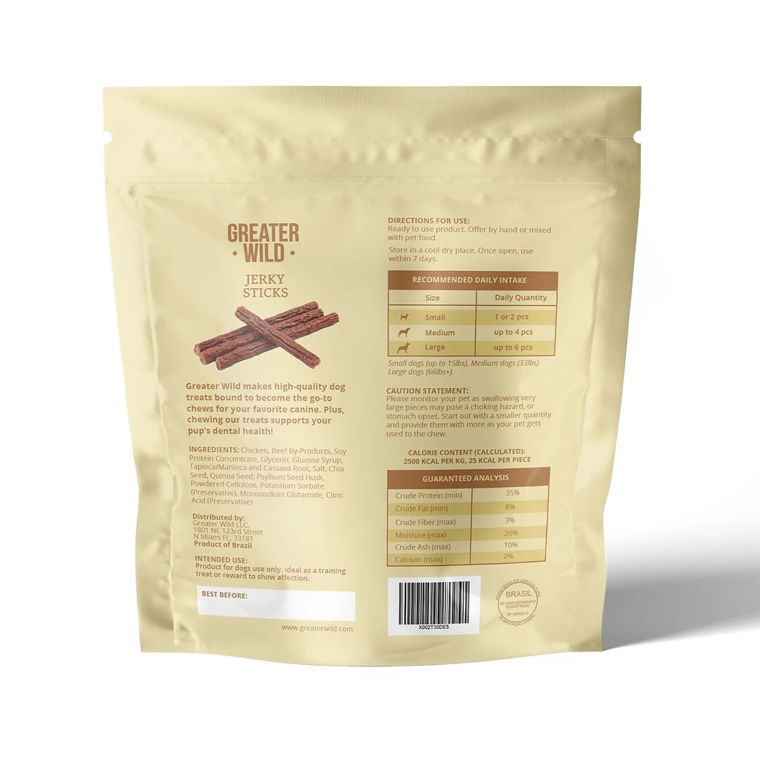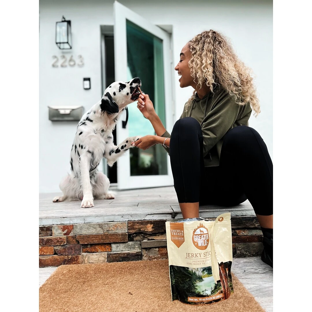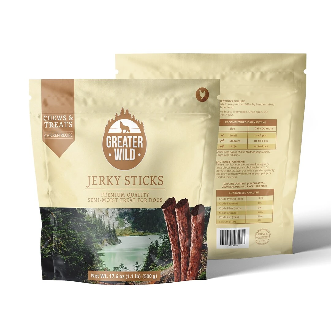 Greater Wild’s Jerky treats are a great way to keep your pet happy. Our Jerky treats are packed full of flavor and nutrients that your pet needs and wants. Made from high quality beef, at Greater Wild we pride ourselves in our rigorous quality standards so you can be sure our Jerky treats will be your go-to treat for rewarding your dog. These long-lasting chews not only keep your best friend entertained, but through abrasive chewing, they keep their teeth clean, too.The soft texture of our Jerky treats is one pets love to enjoy and even the fussiest dogs will eat up. If you are planning on training your pet, our treats are the perfect motivation to get them where you want them to be. Because of the way Greater Wild Jerky treats are prepared, handling these treats won’t leave your hands smelling of processed pet food and will leave your pet hungry for more.