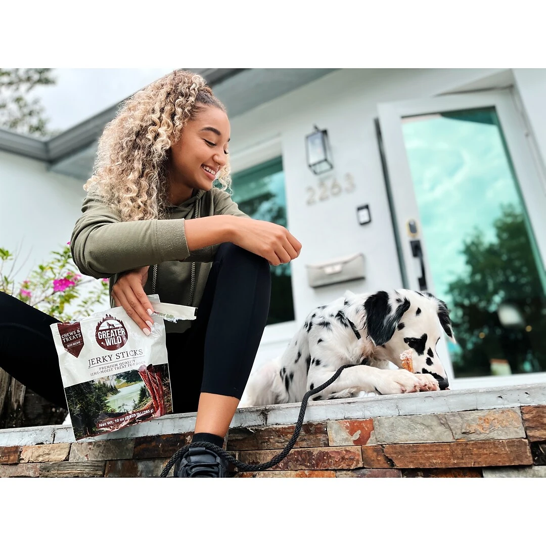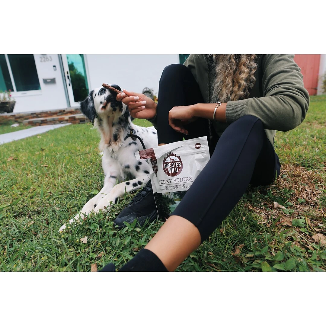 Greater Wild’s Jerky treats are a great way to keep your pet happy. Our Jerky treats are packed full of flavor and nutrients that your pet needs and wants. Made from high quality beef, at Greater Wild we pride ourselves in our rigorous quality standards so you can be sure our Jerky treats will be your go-to treat for rewarding your dog. These long-lasting chews not only keep your best friend entertained, but through abrasive chewing, they keep their teeth clean, too.The soft texture of our Jerky treats is one pets love to enjoy and even the fussiest dogs will eat up. If you are planning on training your pet, our treats are the perfect motivation to get them where you want them to be. Because of the way Greater Wild Jerky treats are prepared, handling these treats won’t leave your hands smelling of processed pet food and will leave your pet hungry for more.