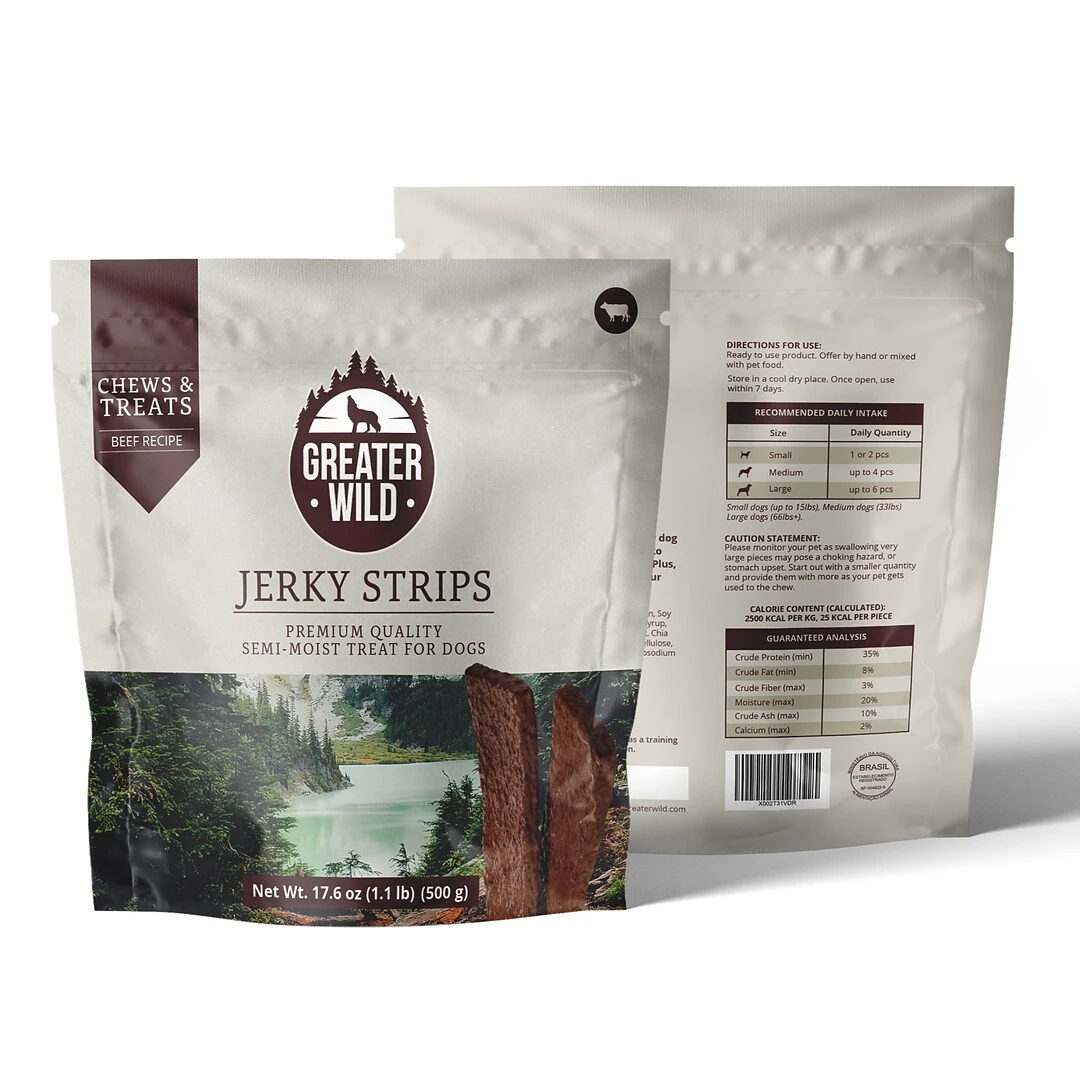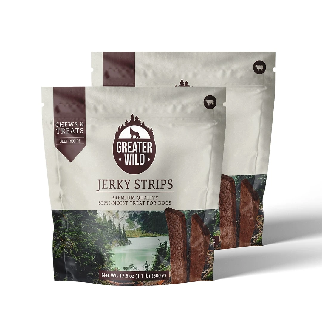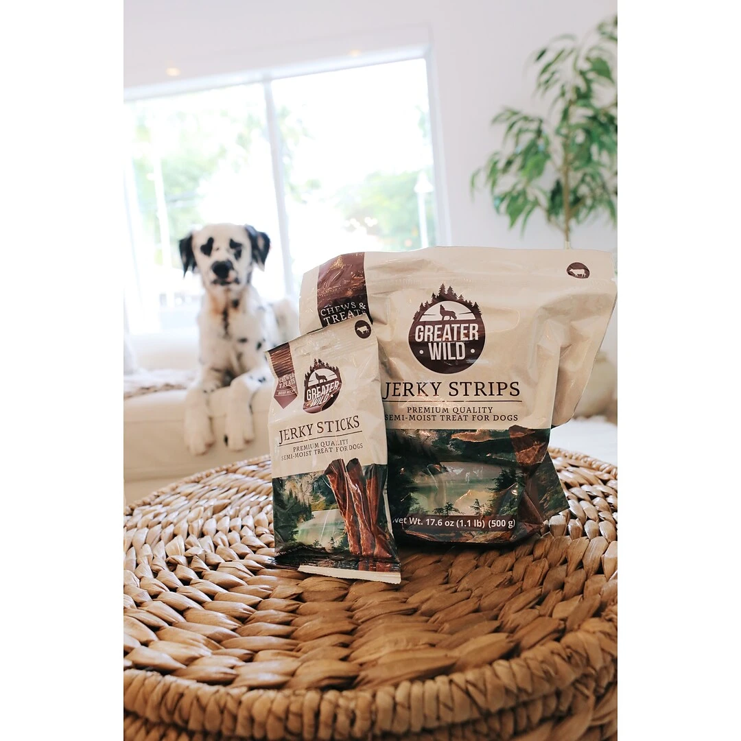 Greater Wild’s Jerky treats are a great way to keep your pet happy. Our Jerky treats are packed full of flavor and nutrients that your pet needs and wants. Made from high quality beef, at Greater Wild we pride ourselves in our rigorous quality standards so you can be sure our Jerky treats will be your go-to treat for rewarding your dog. These long-lasting chews not only keep your best friend entertained, but through abrasive chewing, they keep their teeth clean, too.The soft texture of our Jerky treats is one pets love to enjoy and even the fussiest dogs will eat up. If you are planning on training your pet, our treats are the perfect motivation to get them where you want them to be. Because of the way Greater Wild Jerky treats are prepared, handling these treats won’t leave your hands smelling of processed pet food and will leave your pet hungry for more.
