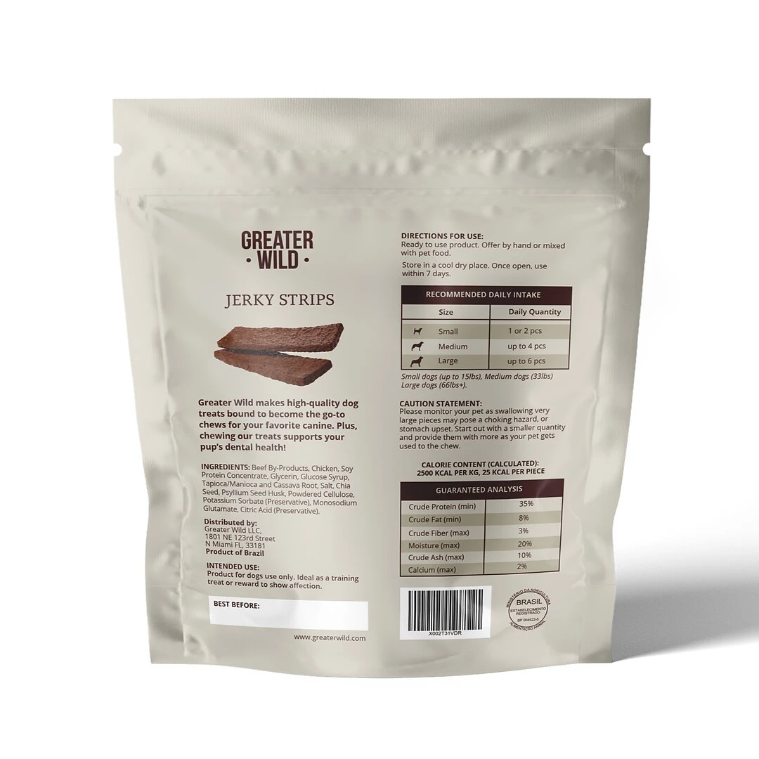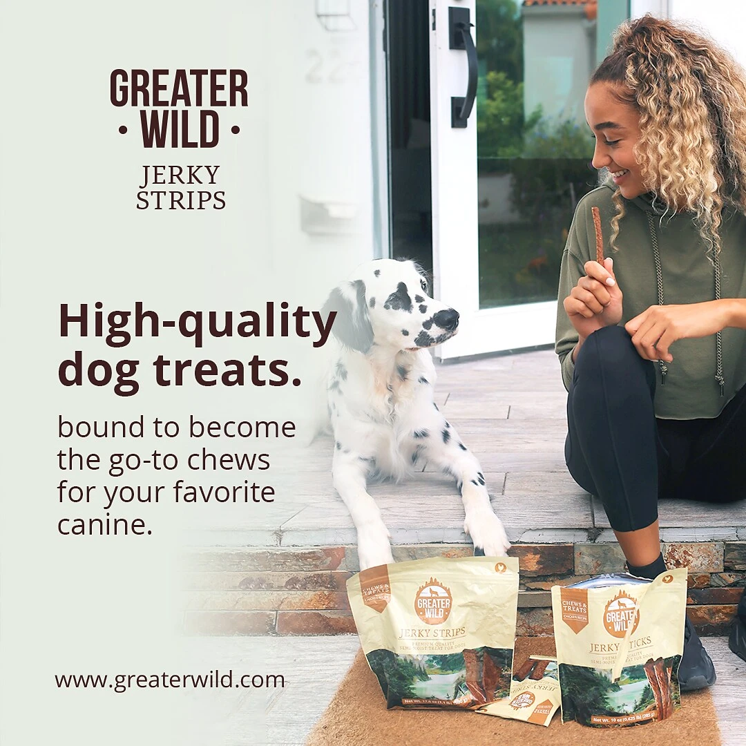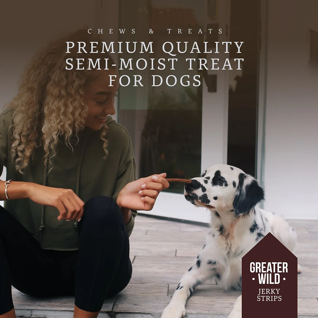 Greater Wild’s Jerky treats are a great way to keep your pet happy. Our Jerky treats are packed full of flavor and nutrients that your pet needs and wants. Made from high quality beef, at Greater Wild we pride ourselves in our rigorous quality standards so you can be sure our Jerky treats will be your go-to treat for rewarding your dog. These long-lasting chews not only keep your best friend entertained, but through abrasive chewing, they keep their teeth clean, too.The soft texture of our Jerky treats is one pets love to enjoy and even the fussiest dogs will eat up. If you are planning on training your pet, our treats are the perfect motivation to get them where you want them to be. Because of the way Greater Wild Jerky treats are prepared, handling these treats won’t leave your hands smelling of processed pet food and will leave your pet hungry for more.
