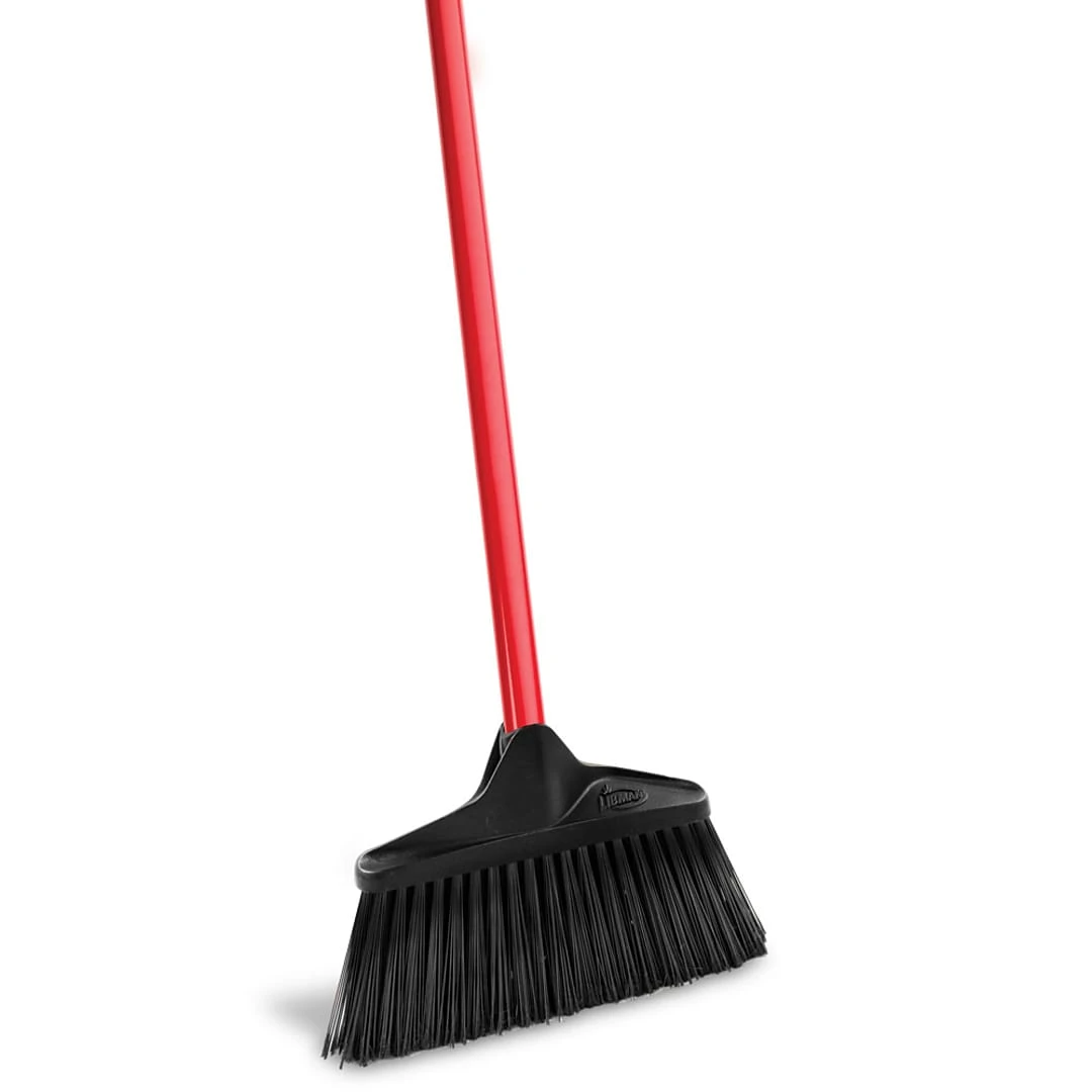 The Libman Lobby Broom (#915) is a 10″ wide, 38″ tall broom with flagged recycled PET fibers that are firm, but flexible. Its one-piece resin block and steel handle are built for durability.