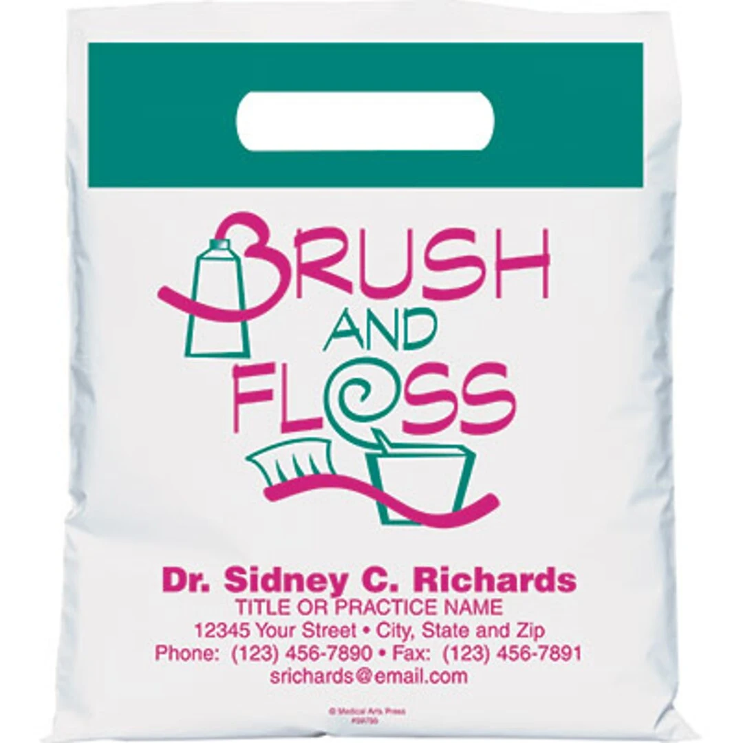 Medical Arts Press® Dental Personalized Small 2-Color Supply Bags; 7-1/2×9″, Dental Icons, Brush And Floss, 100 Bags, (59755)