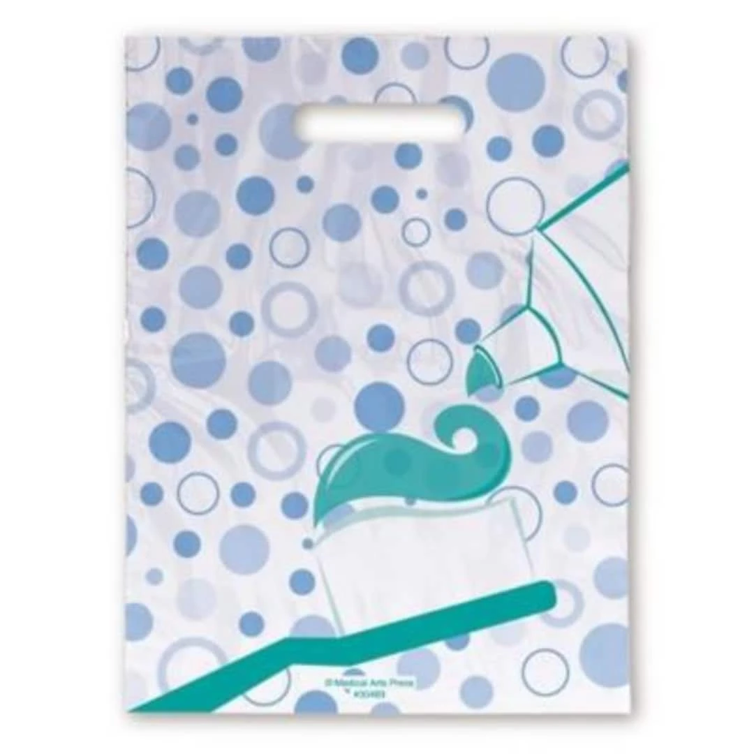 Small Scatter-Print Blue Circles Supply Bags feature a clear construction to ensure visibility of contents. They have a contemporary dental theme design with patterns on both sides.
